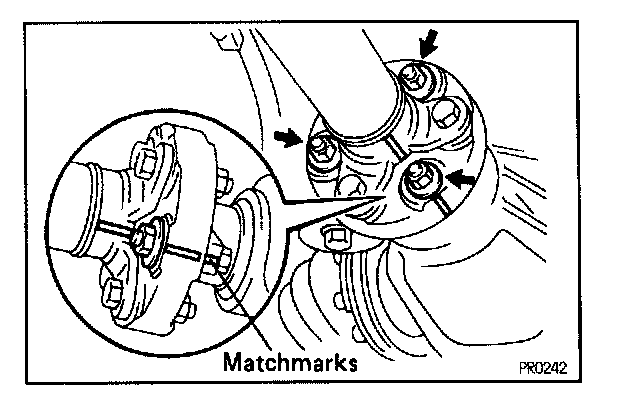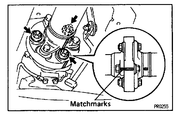 (d) Align the matchmarks and connect the propeller shaft to the transmission/differential.