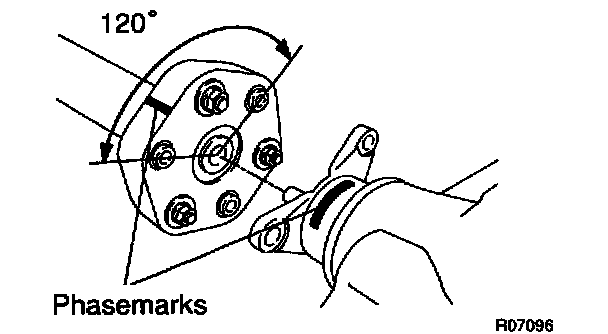Install the propeller shaft phasemarks and differential/transmission phasemarks so that their respective alignment phasemarks match.