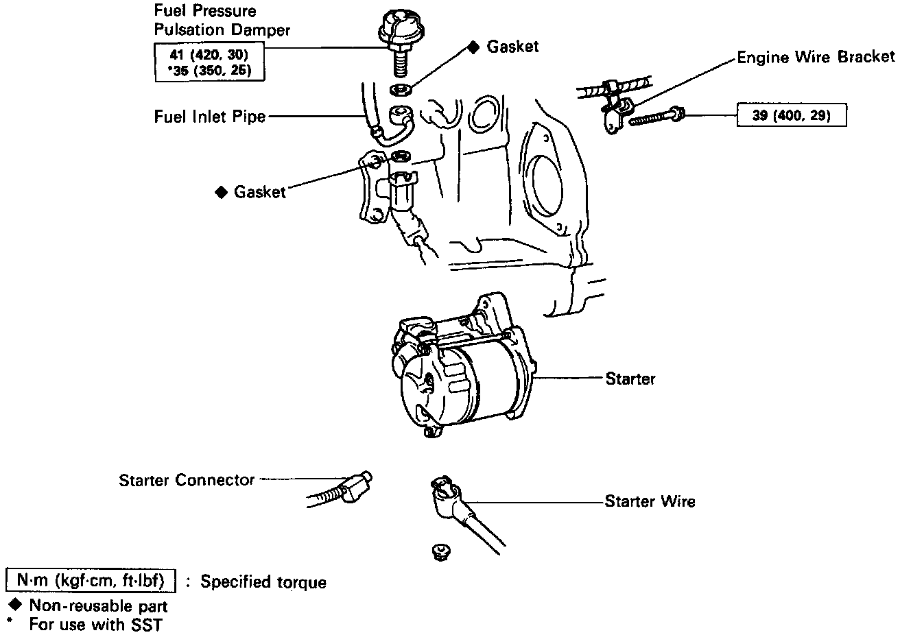 - Install the fuel inlet pipe and pulsation damper with ~ new gaskets.