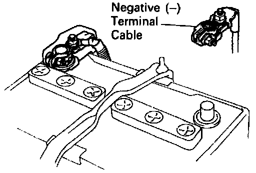 1. DISCONNECT NEGATIVE (-) TERMINAL CABLE FROM BATTERY.