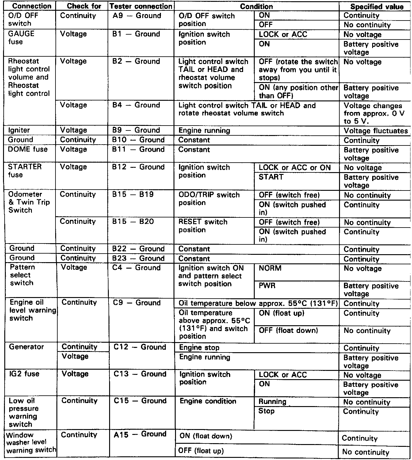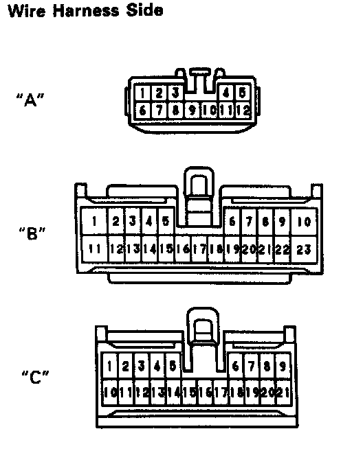 Disconnect connector "A". connector "B" and connector "C" from the combination meter and inspect the connectors on the wire harness side as follows.