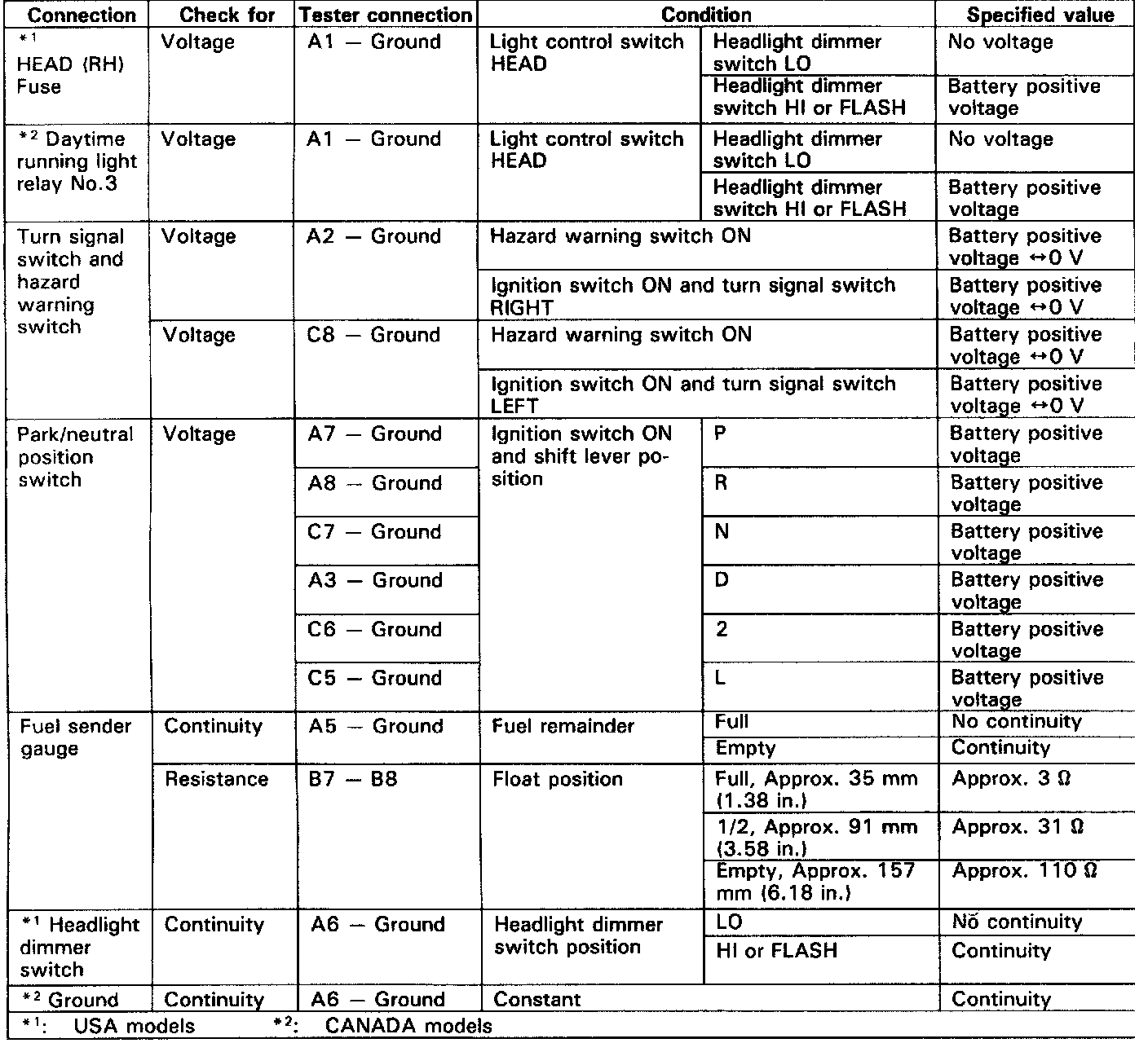 If circuit is not as specified, refer to wiring diagram and inspect the circuit connected to other parts.
