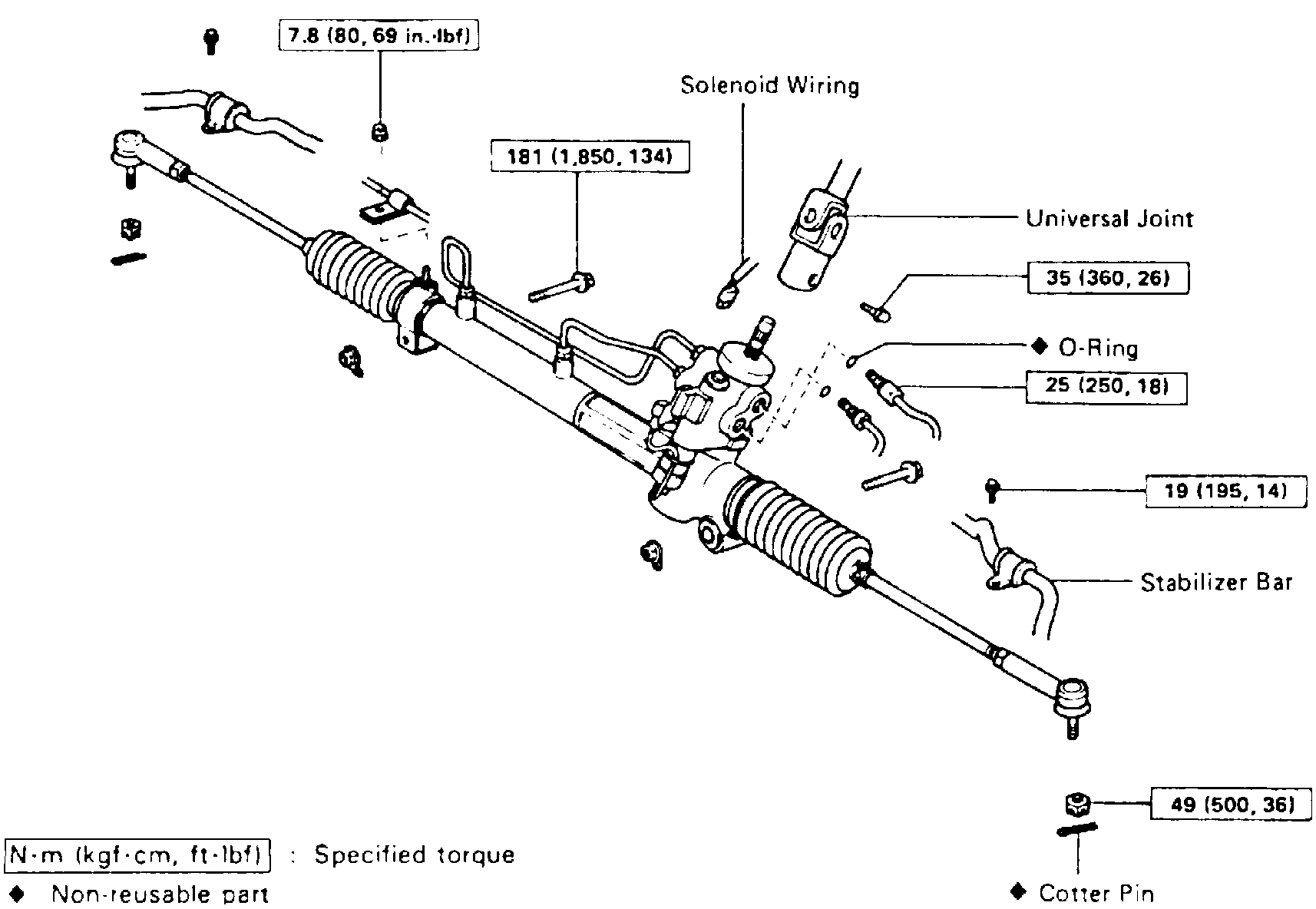 d. Loosen upper universal joint bolt and remove lower universal joint bolt, then disconnect universal joint.