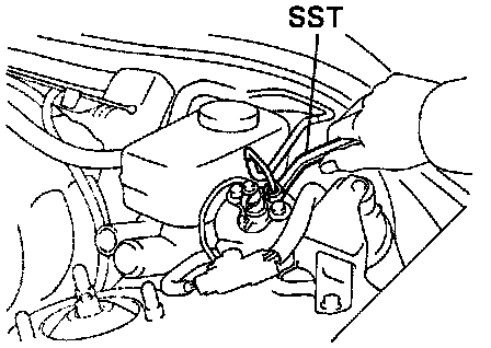 Using Special Service Tool (SST) # 09751-36011, disconnect the brake line from the Accumulator.