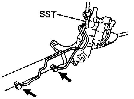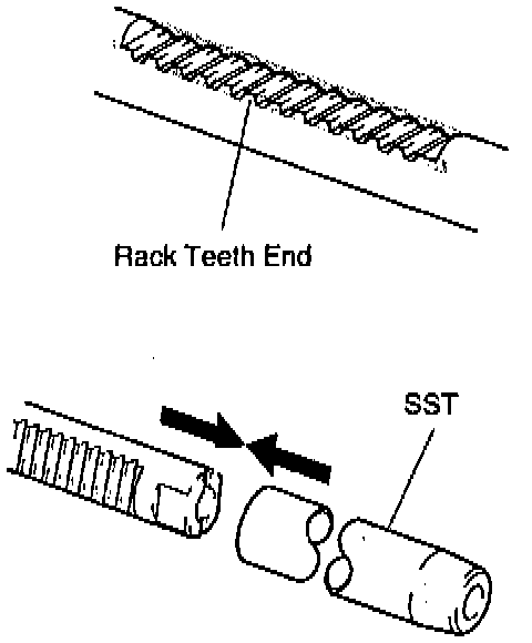 a. To prevent oil seal lip damage, wind vinyl tape on the steering rack end, and apply power steering fluid.
