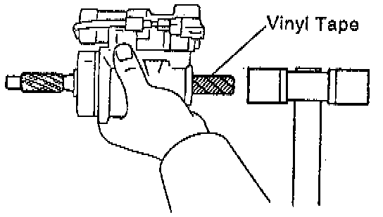 b. To prevent oil seal lip damage, wind vinyl tape on the serrated part of the valve shaft.