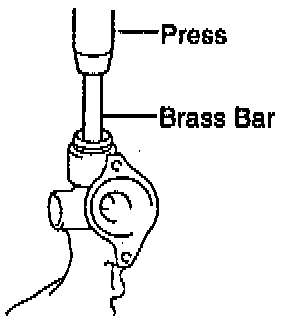 a. Using a brass bar and a press, press out the rack with the oil seal.