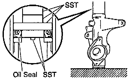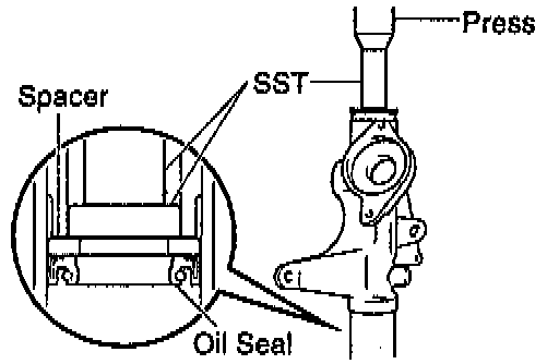 18. Using the 09950-60010(09951-00280) 09950-70010(09951-07200) SST, press out and remove the oil seal and spacer.