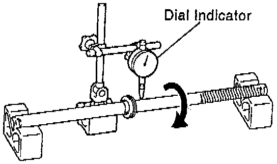 a. Using a dial indicator, check the rack for runout, and for teeth wear or damage. The maximum runout should be 0.30 mm (0.0118 inch).