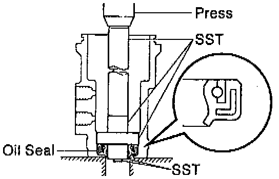 c. Using the 09950 - 60010 (09951 - 00290, 09951 - 00420, 09952 - 06010) SST, press in the oil seal.
