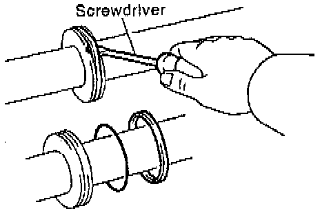 a. Using a screwdriver, remove the teflon ring and O-ring from the steering rack.
