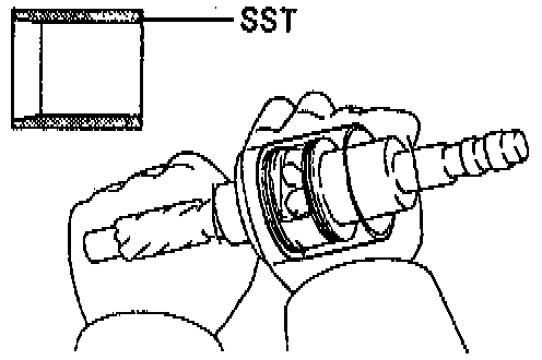 e. Using the SST 09950 - 60010 (09951 - 00350) 09950-70010 (09951 - 07200) SST, press in the bearing.