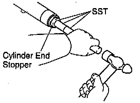 16. Using the 09631 - 20090 SST, remove the cylinder end stopper and spacer.