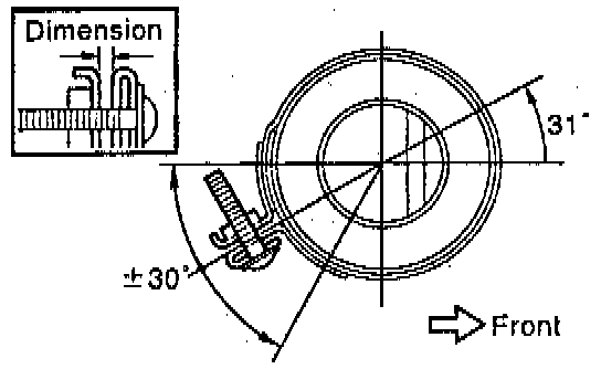e. Place the clamp as shown, and tighten the screws until the dimension is within the specification. The dimension should be 2 - 5 mm (0.08 - 0.20 inch).