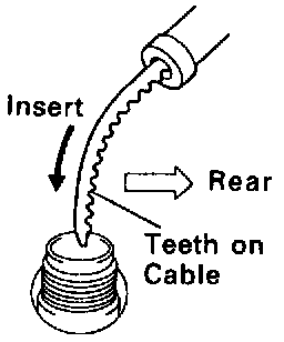 HINT: When inserting the cable. the teeth on the cable must face toward the rear of the vehicle.