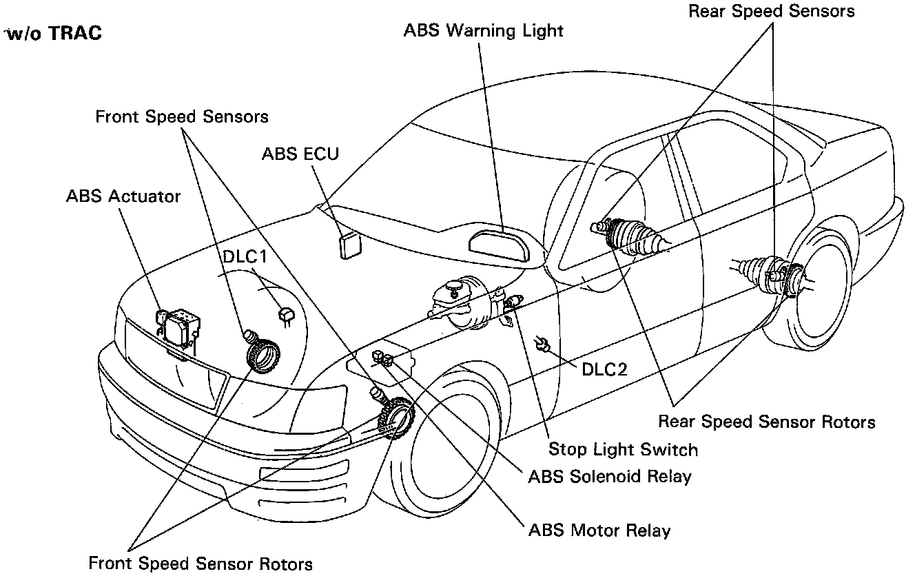 Anti-Lock Brake System (ABS) W/out TRAC, Component Locations: