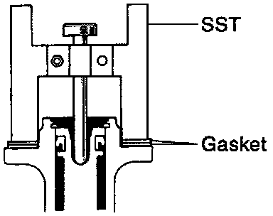 2. Set the Special Service Tool (SST) # 09737-00010 on the gasket, and lower the pin until its tip slightly touches the piston.
