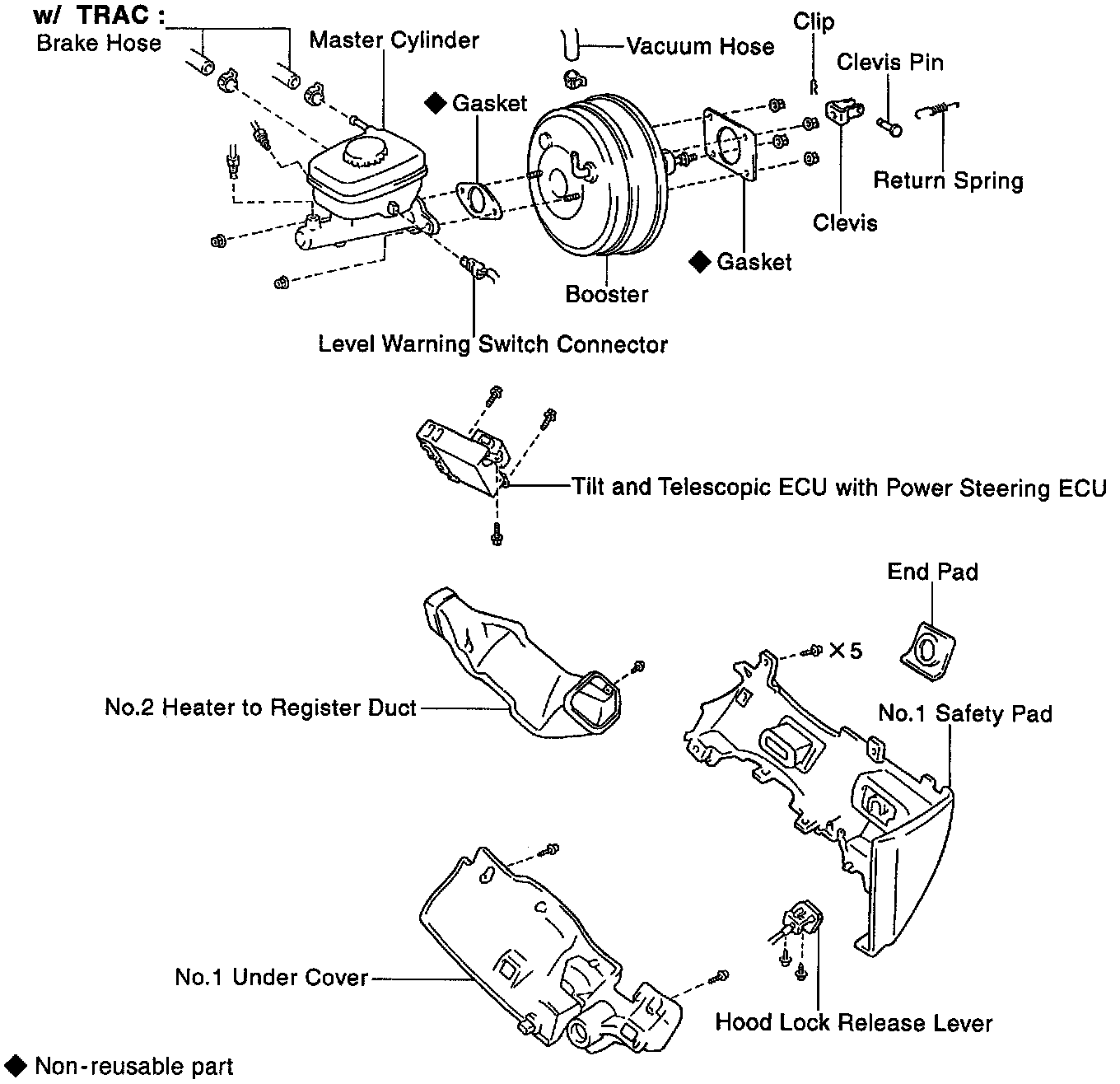 CAUTION: When adjusting the length of the Booster Push Rod, install 2 new gaskets to the Master Cylinder. When installing the Master Cylinder, remove one gasket before installing the Master Cylinder.