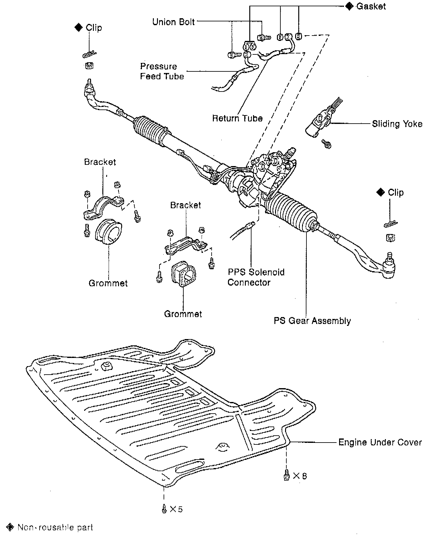 8. Disconnect return tube and remove the union bolt and 2 gaskets.