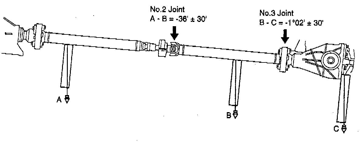 JOINT ANGLE INSPECTION AND ADJUSTMENTNOTICE: When performing operations which involve the removal and installation of the propeller shaft. always check the joint angle. Make adjustments if necessary.