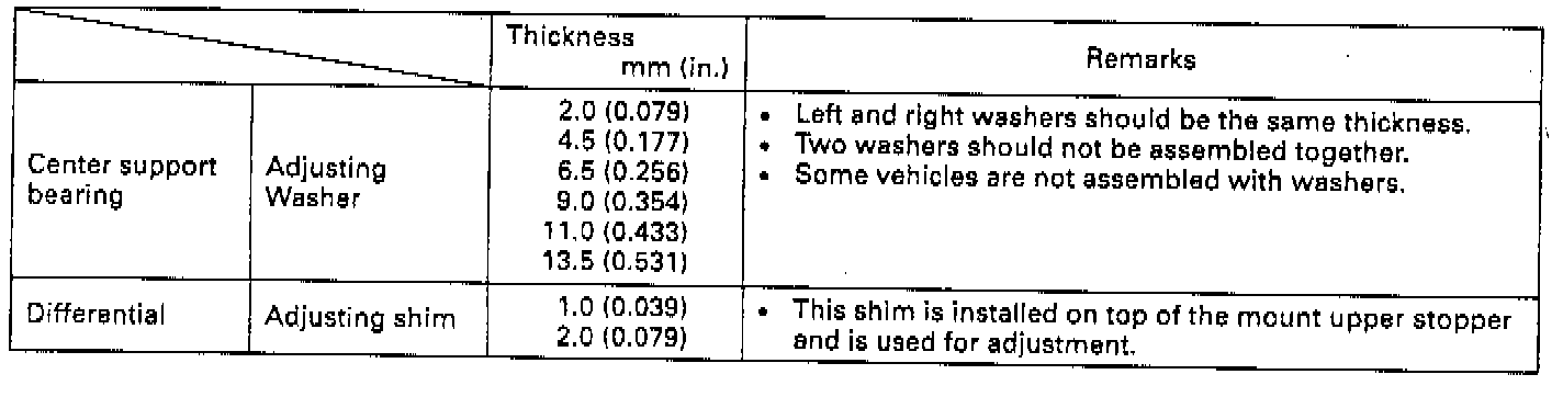 NOTE: Adjust joint angle using the adjustment chart, adjusting it with the center support bearing adjusting washer and differential shim.