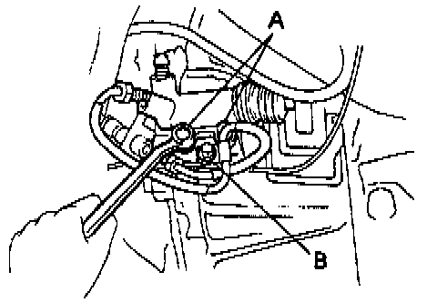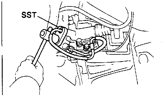 1. Disconnect clutch line. Using Special Service Tool (SST) 09023-00100, disconnect the clutch line. Use a container to catch the fluid.