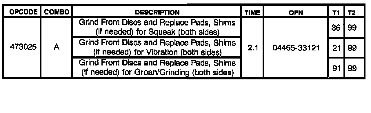 New Front Brake Pads are available to reduce front brake groan or grinding noise on 1997-1999 ES 300.