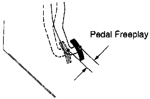 HINT: The freeplay to the 1st resistance is due to the play between the clevis and pin. This is magnified up to 1 - 6 mm (0.04 - 0.24 inch) at the pedal.