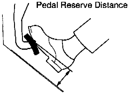 b. With the engine running, depress the pedal and measure the pedal reserve distance. as shown.
