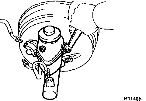 Remove the 2 nuts, and pull out the 2-way, master cylinder and gasket.