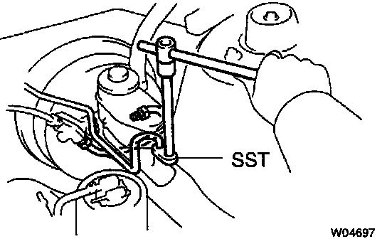 Using Special Service Tool (SST) 09023-00100 or equivalent, disconnect the 5 brake lines.