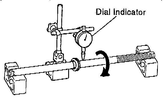 a. Using a dial indicator, check the rack for runout and for teeth wear and damage. The maximum runout is 0.30 mm (0.0118 inch).