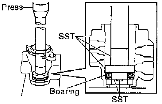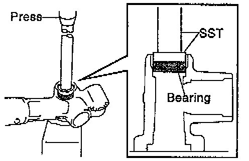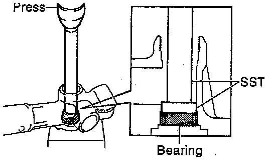 e. Using the 09950-60010 (09951-00180, 09951-00340, 09952-06010), 09950-70010 (09951-07200) SST, press in the bearing.