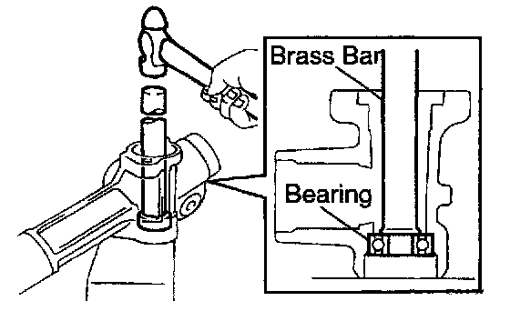 a. Using a brass bar and hammer, tap out the bearing from the rack housing.
