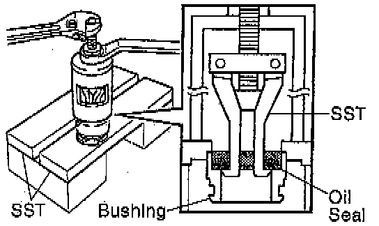 a. Using the 09527-20011, 09612-24014 (09613-22011) SST, remove the oil seal from the bushing.