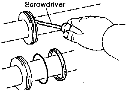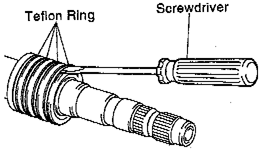 a. Using a screwdriver, remove the teflon ring and O-ring from the steering rack.