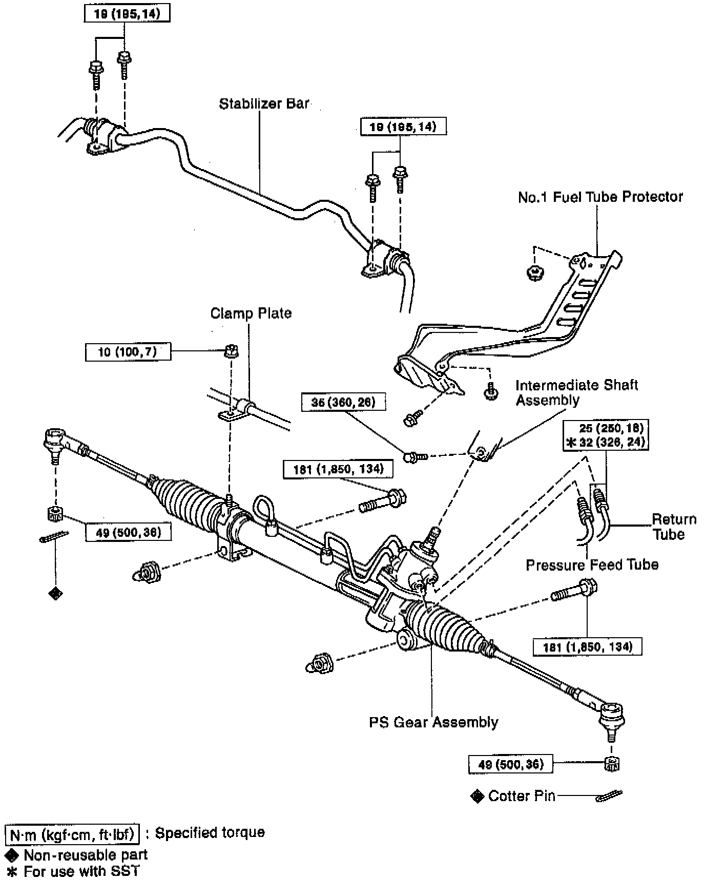 4. Using the 09631-22020 SST, connect the pressure feed and return tubes, and tighten the tubes to 32 Nm (24 ft lbs.).