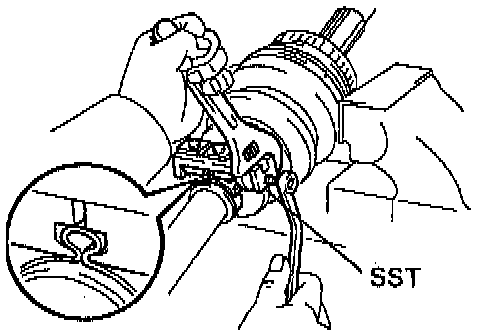 h. Using the 09240-00020 SST, adjust the clearance of the clamp.