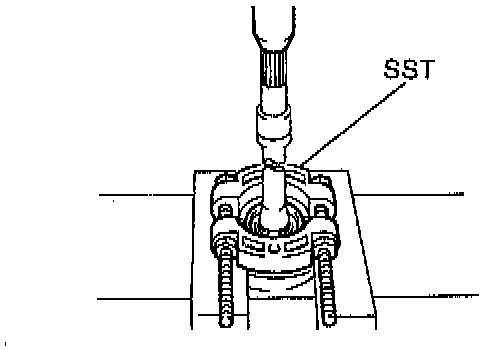 a. Using Special Service Tool (SST) 09950-00020 or equivalent, and a press, remove the dust cover.