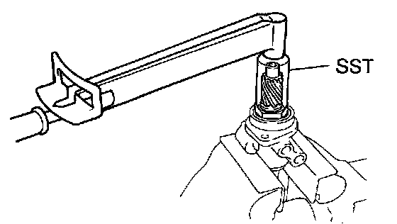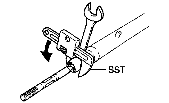 b. Holding the rack guide spring cap rotating, and using SST 09922-10010, torque the nut.