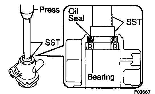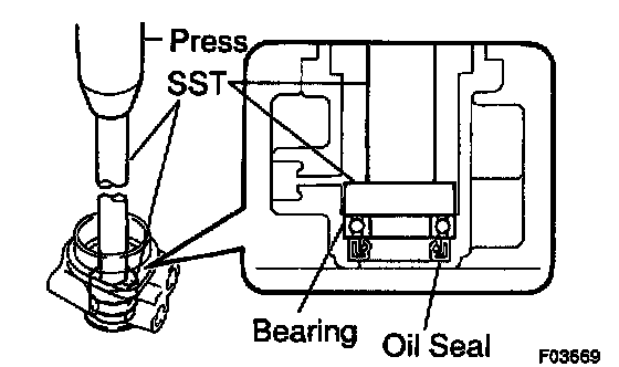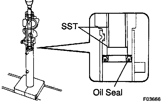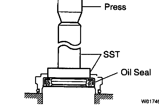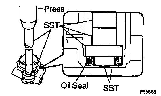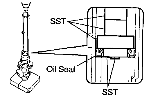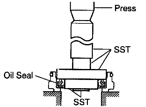 d. Install the oil seal by pushing it onto the SST without tilting.
