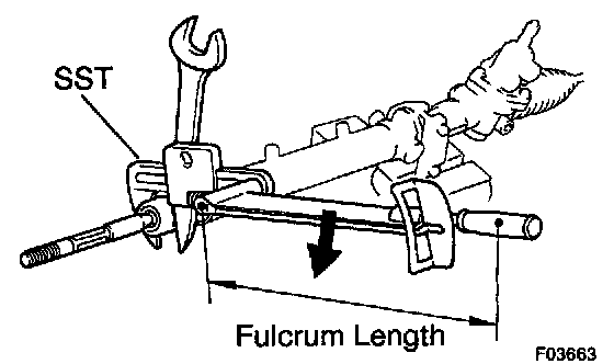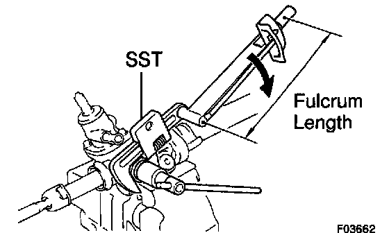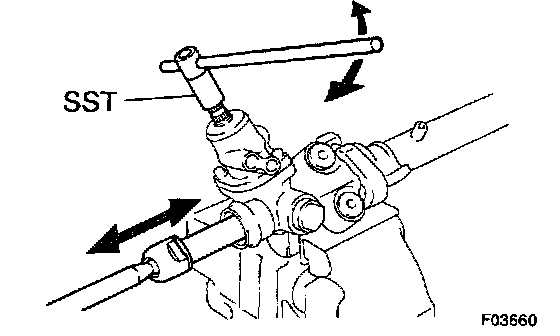 b. Using a spanner to hold the steering rack steady, and using SST, torque the rack end.
