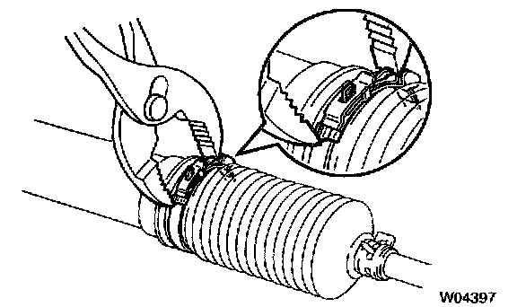 14. Install RH and LH rack boots, clamps and clips.