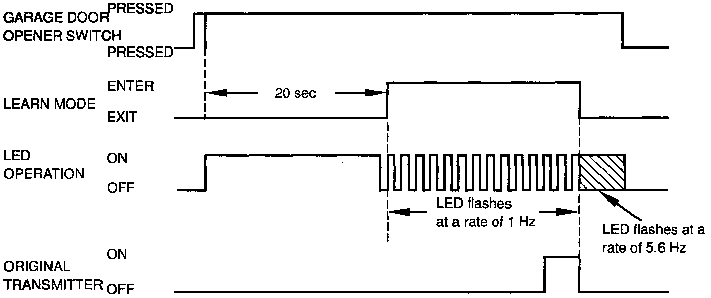 b. In the condition of (a), bring the original transmitter to within 1 - inch area around the garage door opener and press the switch. (code transmitting).