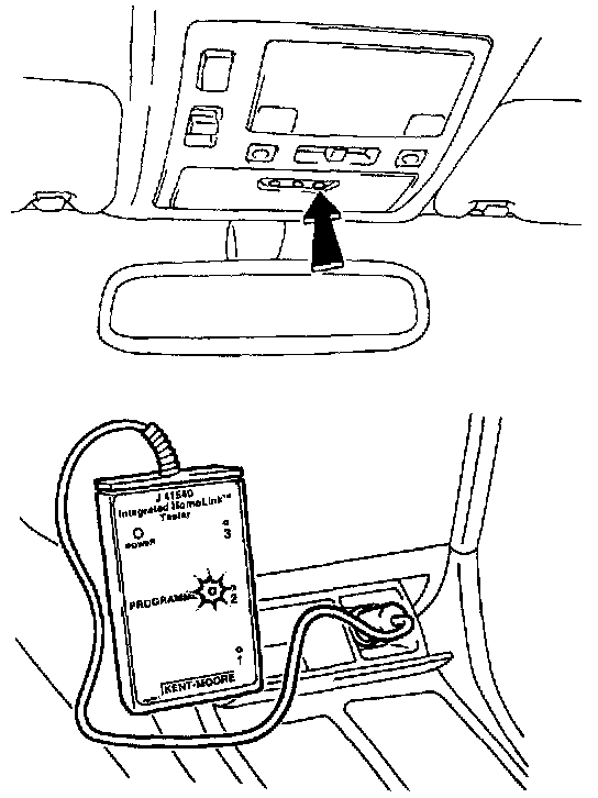 HINT: Use the home link tester made by KENT MORE for this test. As it is necessary to record the code of the hand held transmitter, customer's code will be erased. When the inspection completes, please register the customer's again.
