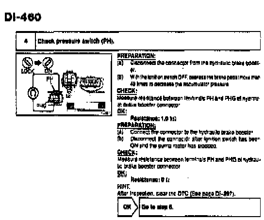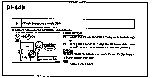 Repair Manual corrections have been made to the Hydraulic Brake Booster Pressure Switch (PH) and (PL) conditions check as shown: