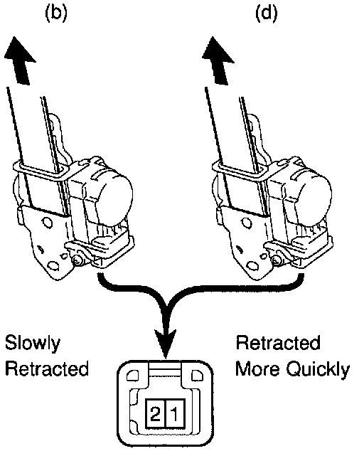 d. Pull the belt upward and check that the belt is retracted more quickly when released than in (b).