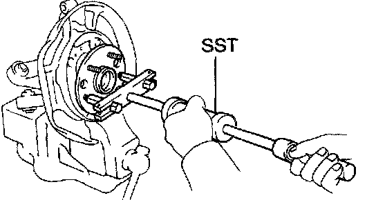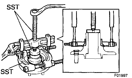 c. Using Special Service Tool (SST) 09520-00031 or equivalent, remove the axle hub from the axle carrier.