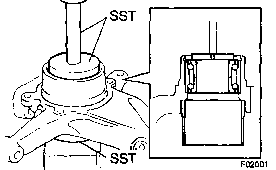 a. Using SST 09527-17011, 09950-60020 (09951-00810), 09950-70010 (09951-07100) and a press, install a new hub bearing to the axle carrier.
