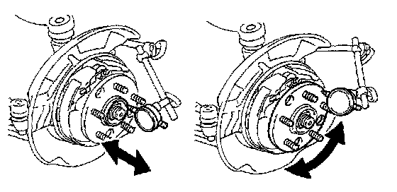 a. Using a dial indicator near the center of the axle hub and check the backlash in the bearing shaft direction.